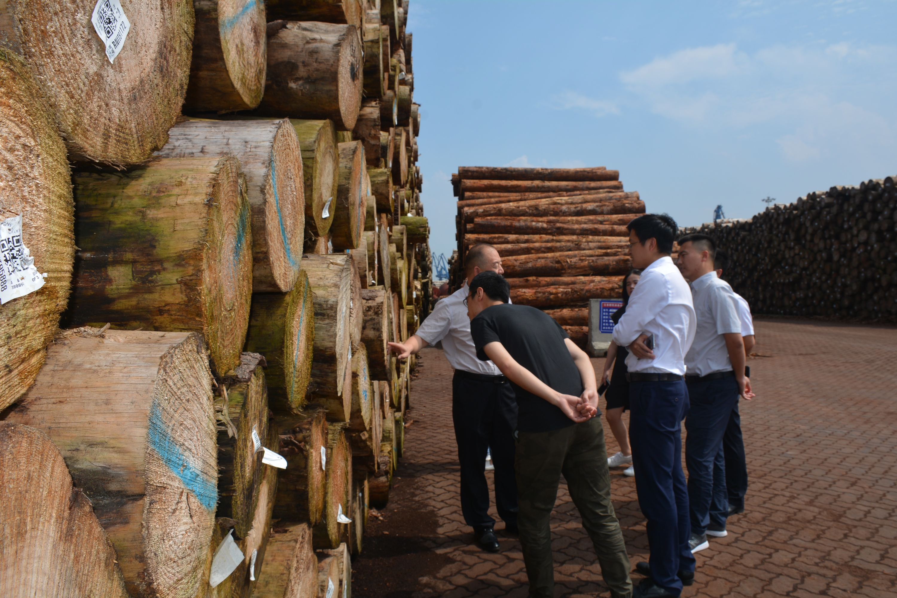 周永強等一行先后實地考察了中林如皋港碼頭各泊位及污水處理中心、新民洲港碼頭4號泊位、木材堆場、713畝木材初加工二期工程及1098畝木材先進(jìn)制造區(qū),詳細(xì)聽取了現(xiàn)場負(fù)責(zé)人關(guān)于進(jìn)口鐵煤礦及木材接卸流程和倉儲模式、堆場木材種類和在建工程等情況的介紹。