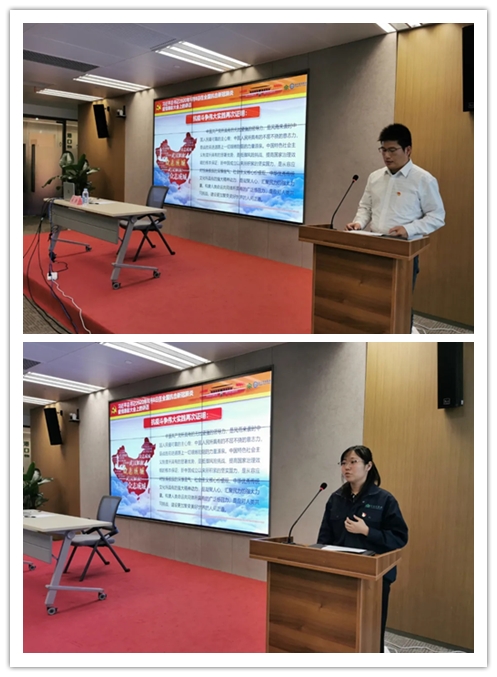 最后,各黨支部代表上臺(tái)交流發(fā)言,將習(xí)近平新時(shí)代中國(guó)特色社會(huì)主義思想與工作實(shí)際、身邊典型、感人故事相結(jié)合,講述身邊的感人事跡和今天的學(xué)習(xí)體悟。
